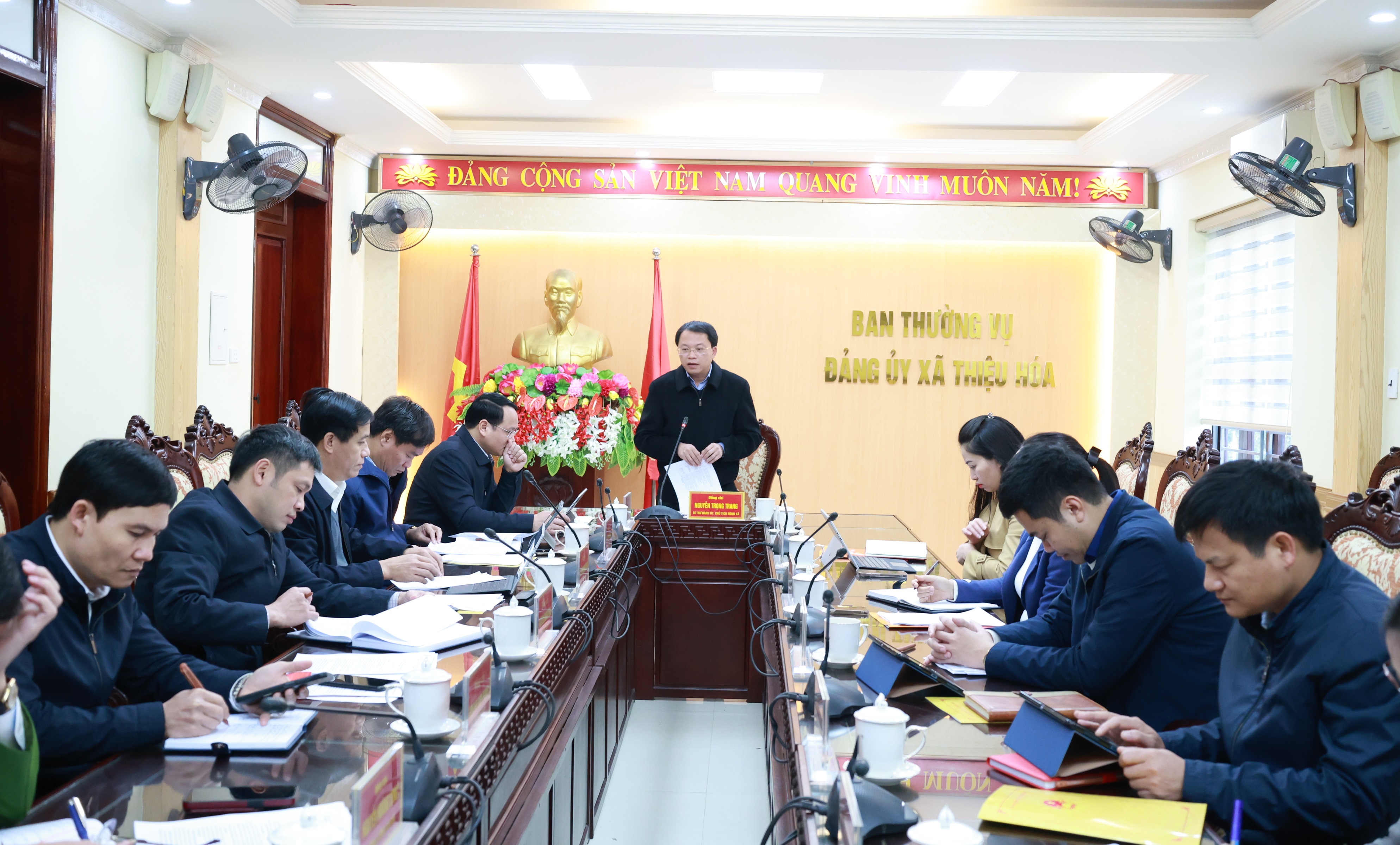 Sáng ngày 8/1/2026, dưới sự chủ trì của đồng chí Nguyễn Trọng Trang, Bí thư Đảng ủy, Chủ tịch HĐND xã, Ban Thường vụ Đảng ủy xã Thiệu Hóa tổ chức hội nghị cho ý kiến vào Đề án hoàn thiện cơ sở vật chất trường, lớp học xã Thiệu Hóa giai đoạn 2026 - 2030 và Đề án xây dựng Trường THCS Vạn Hà trở thành trường trọng điểm về chất lượng giai đoạn 2025 -2030.